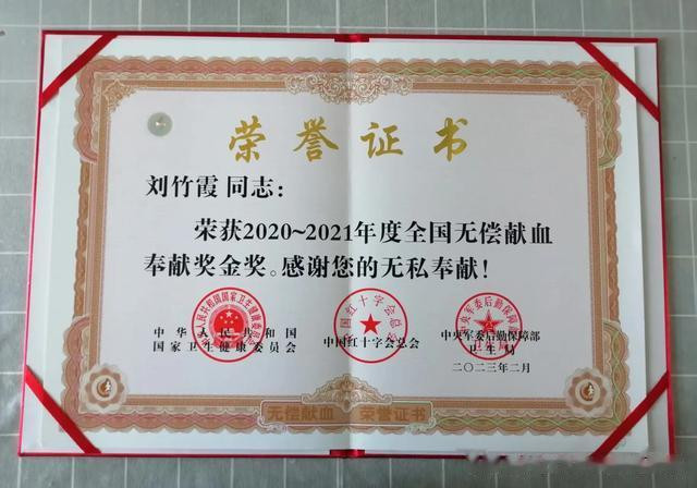 刘竹霞一位质朴农村妇女,她同时也是一名有着坚定信仰的中共党员,在村委做服务工作。谁也想不到,这位看似平凡的女性,在长达16年的时间里,默默坚持着一件不平凡的事——无偿献血,累计献血量高达13800ml。